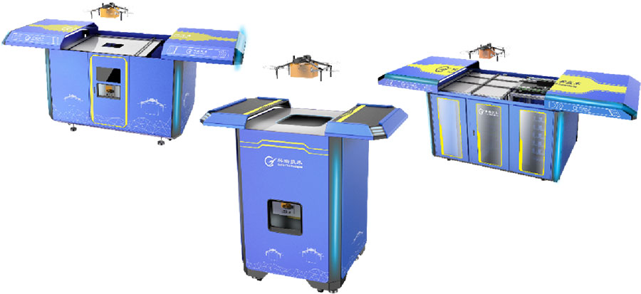 頂部自動對開門,停機坪使用面積最大化,方便無人機降落。專用貨架可放置 20 個存儲倉,每個倉位單獨存取。底架采用型鋼焊接成型,保證整體強度。可配置充電模塊,方便無人機充電。