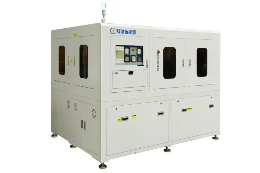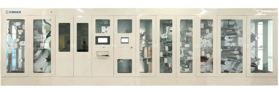 激光模切分條一體機主要應用于極片極耳成型與極片分條,制成品可供應疊片設備與卷繞設備。采用激光高速切割技術,搭配獨立自適應除塵系統與排廢料系統,在獨立空間內進行極耳切割;通過收放卷裝置、牽引裝置與張力控制裝置實時聯動,控制極片穩定高速傳輸,通過五金刀模進行極片分條,并采用高速相機自動識別切割質量、尺寸精度與來料異常,及時排除品質不良,保證產品質量安全。